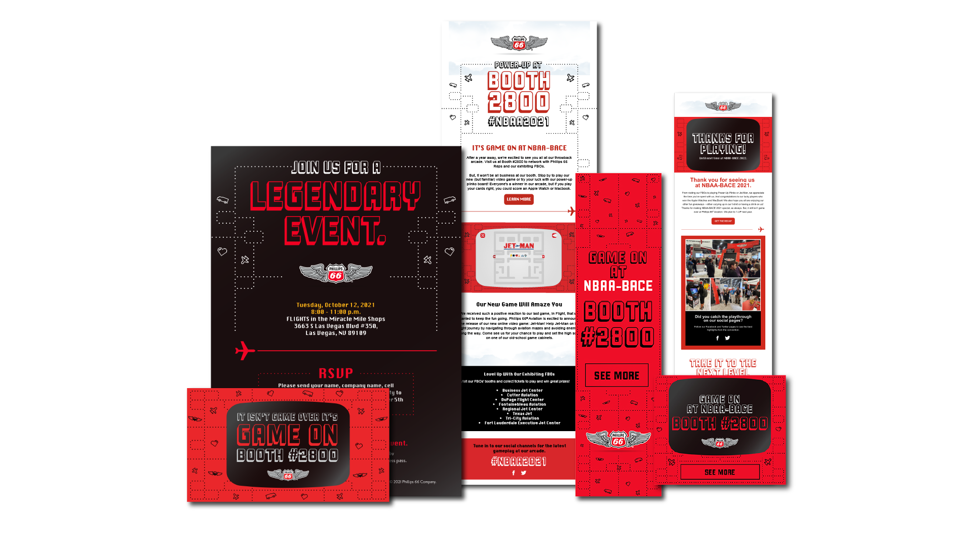 From 2021 to 2023, I led the creative vision as Art Director, shaping immersive visual concepts and activations that resonated with diverse audiences. Whether it was a high-energy bar crawl, a sun-soaked beach walk, or milestone anniversary celebrations, I collaborated with a tight-knit team to craft themes and activations that captivated attendees before, during, and long after the events. The results spoke for themselves: each activation consistently generated 500+ leads and elevated Phillips 66 Aviation’s brand presence across the industry.